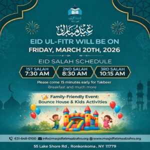 Masjid Fatima Al-Zahra is a 501(c) religious organization in Ronkonkoma , NY – a community of believers adhering to the Qur’an and the sunnah of the Prophet Muhammad (Peace and Blessing Be Upon Him).